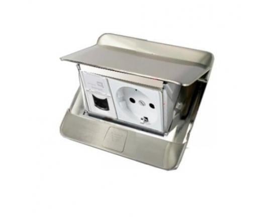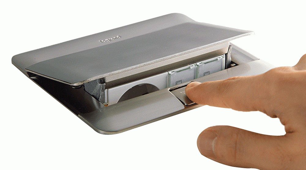 Caseta de tip pop-up neechipata, pentru 3 module, finisaj otel slefuit. Design subtire pentru integrare perfecta in mobilierul de podea sau de birou. Deschidere moale pentru confort si siguranta sporita. Echipat cu sistem push si slide de blocare pentru a evita deschiderea accidentala de picioare.