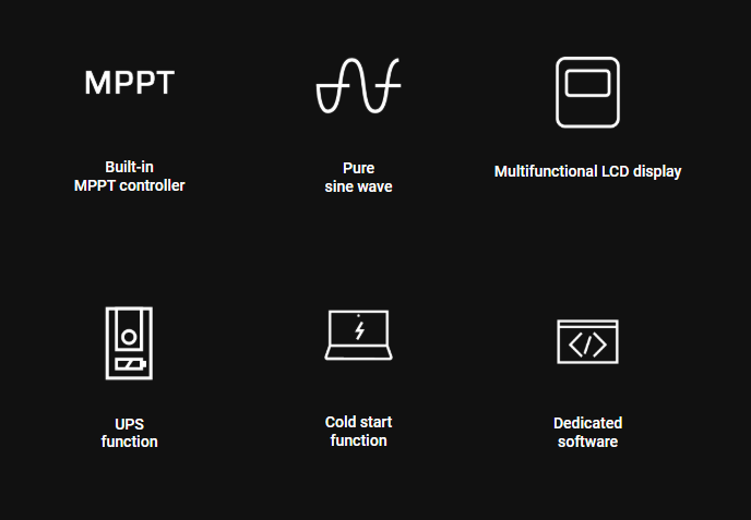 | Funcții suplimentare | LCD multifunctional, UPS, cold start, software dedicat, racire adaptivă |