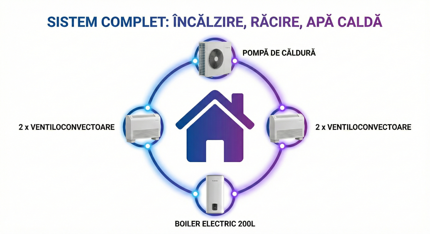 | Echivalență | Înlocuiește centrala, AC-ul, boilerul | Înlocuiește centrala, AC-ul, boilerul |